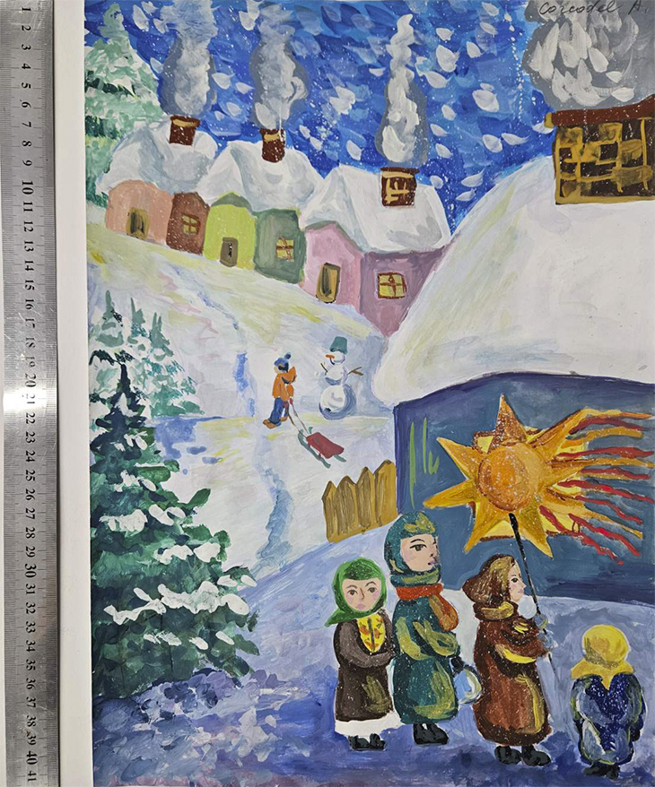 "Под чистым небом Рождества" (гуашь)